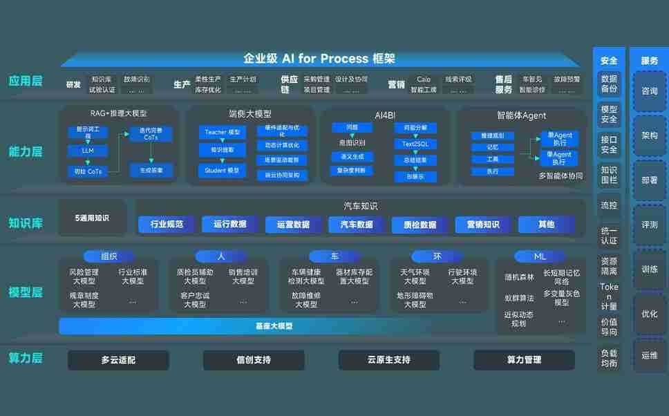 端到端的一站式AI工作空间深度融合了从企业战略规划到日常经营的全流程业务板块,,,定向解决车企内部领域多、、、部门多、、、链条长、、、场景碎片化等难题,,,支持车企快速构建以AI为核心的生产力写作体系,,实现任务执行与AI能力的无缝集成与交互